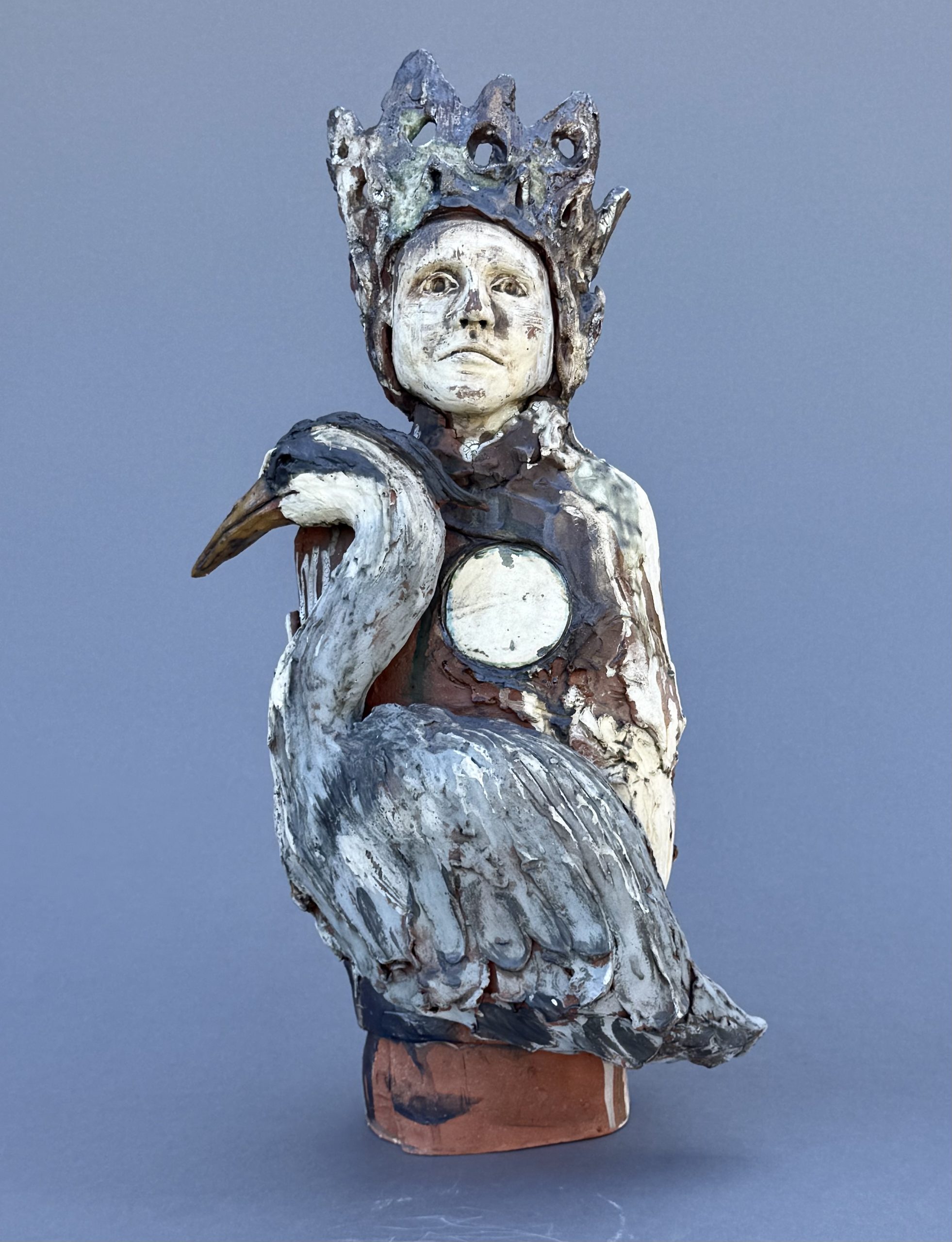 In the landscape of human experience, a “desire path” is the unplanned route carved by choices, losses, and transformations. This work is a testament to the precious, fleeting nature of life and the resilience found in nature’s lifecycles. I work with clay because it is a material that embodies memory, mirroring the fragility of life. These sculptures act as shrines to moments lost, realized, or imagined. By turning the scars of life into decorative regalia, these figures wear their histories as adornments. They honor memories and the trail we carve into the earth when we stray from the path.