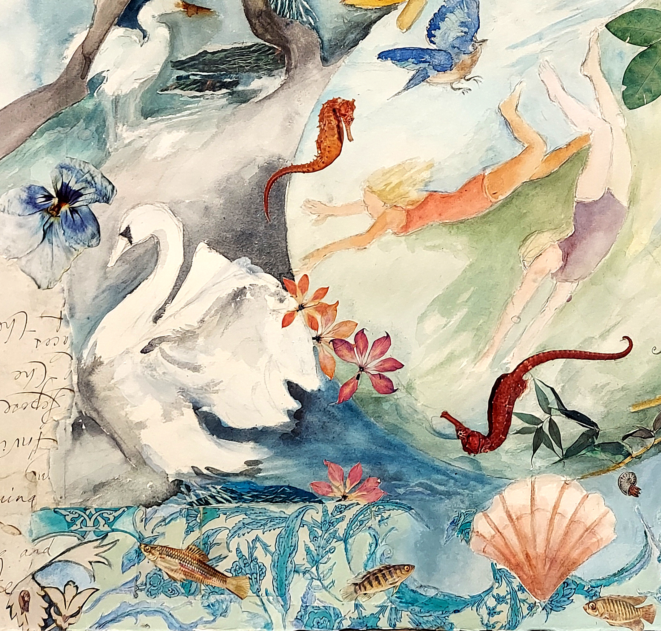 Collage compositions find inspiration in quilts, illuminated texts, early tribal and folk clothing, old, discarded objects, fibers and papers. Collage art works are sometimes aesthetic, utilitarian, communicative; or all of these things at once.