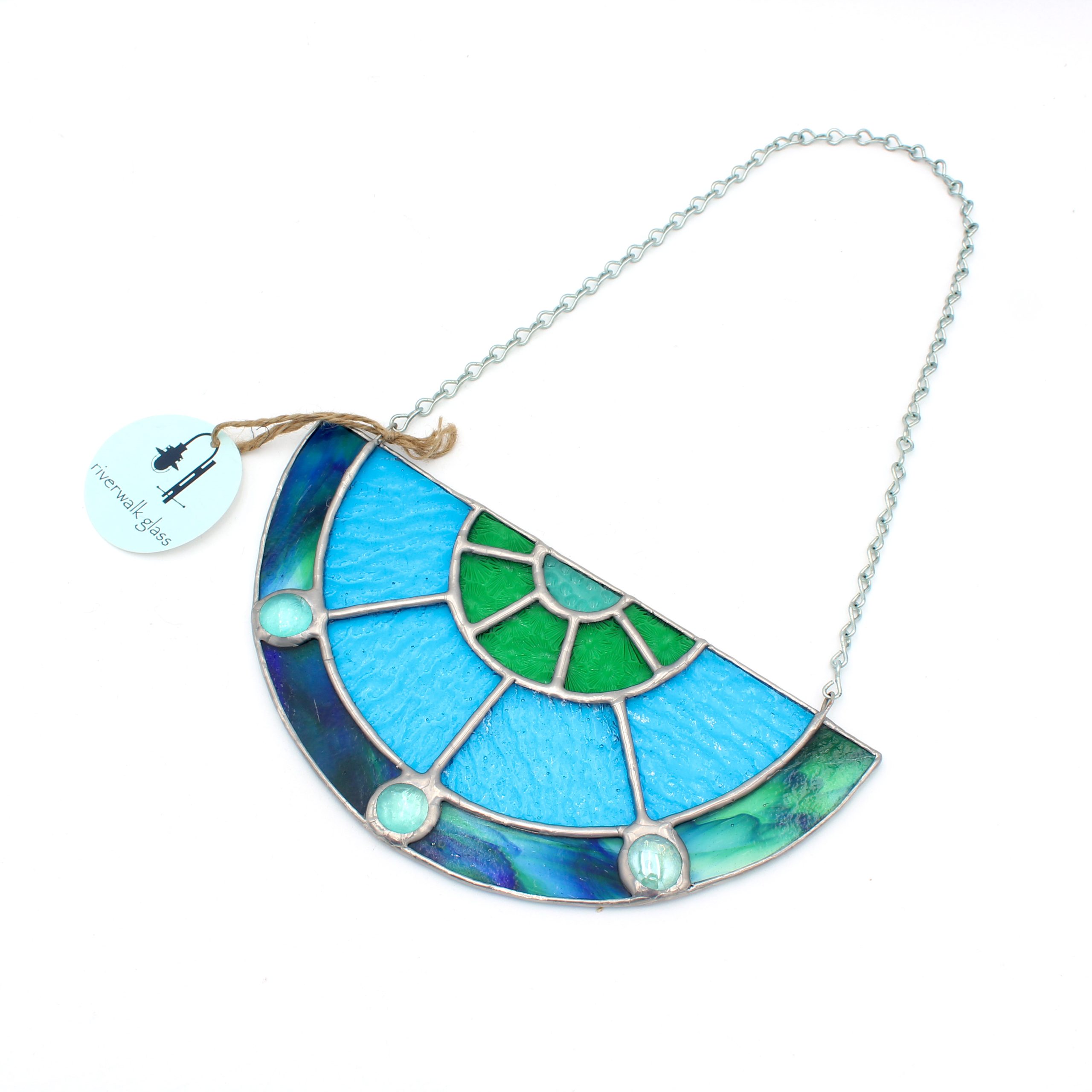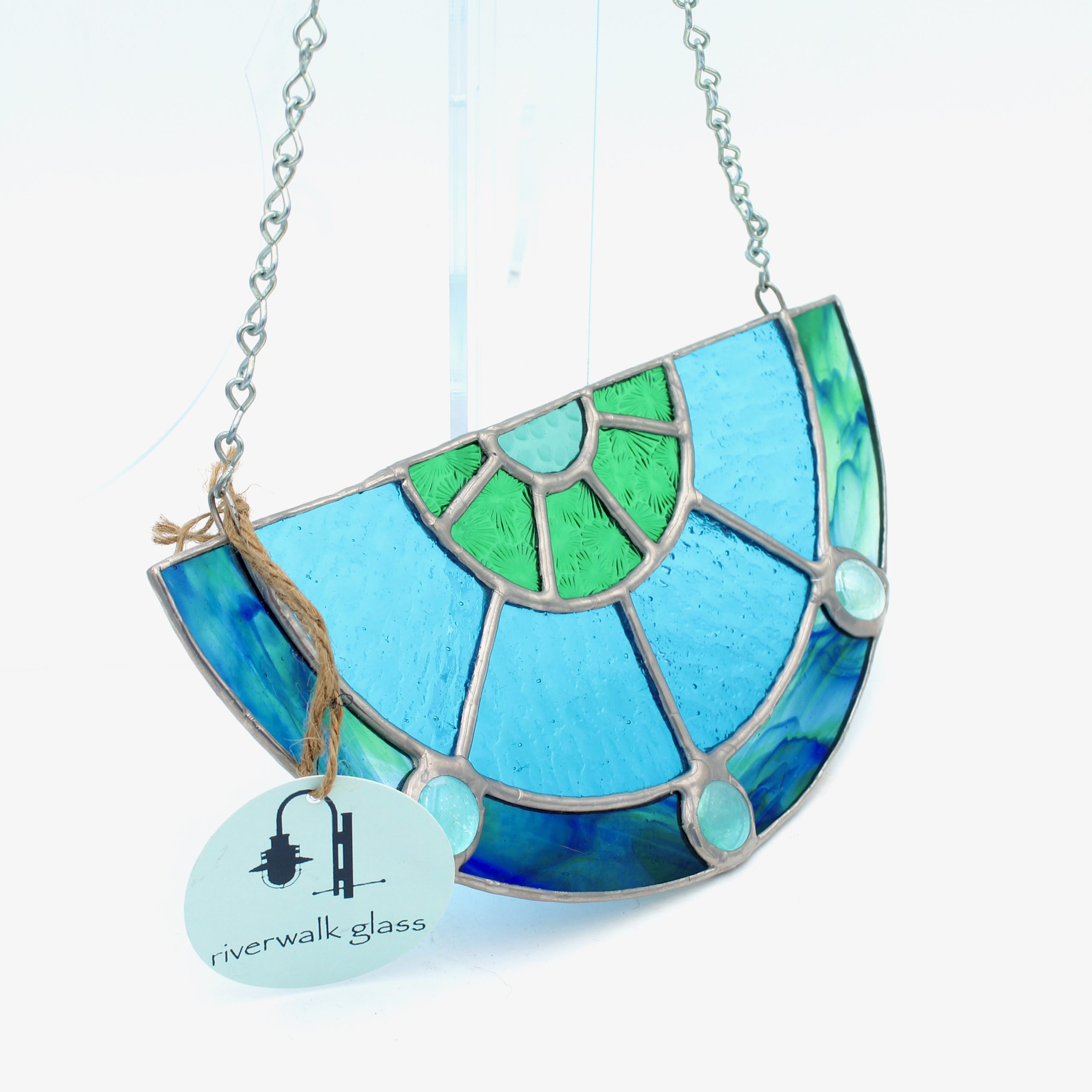 Stained glass mosaic on metal chain
