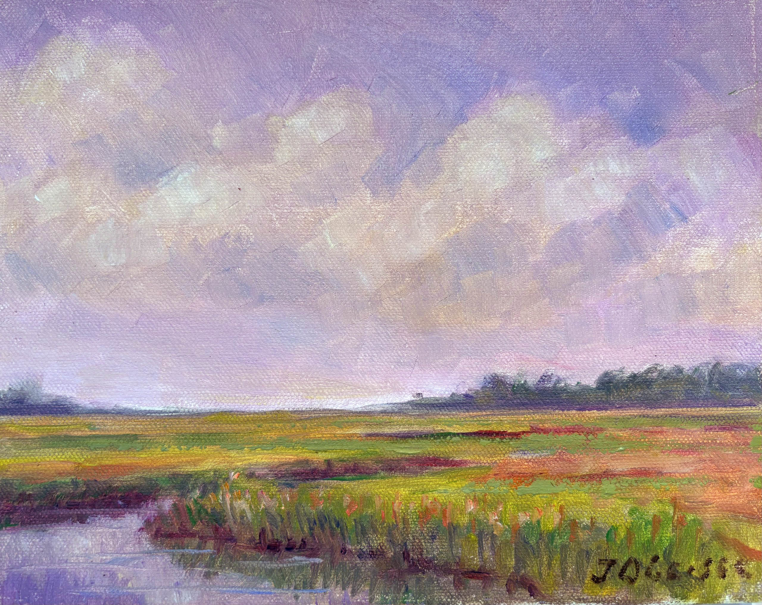 This original painting is framed in an ornate gold frame.