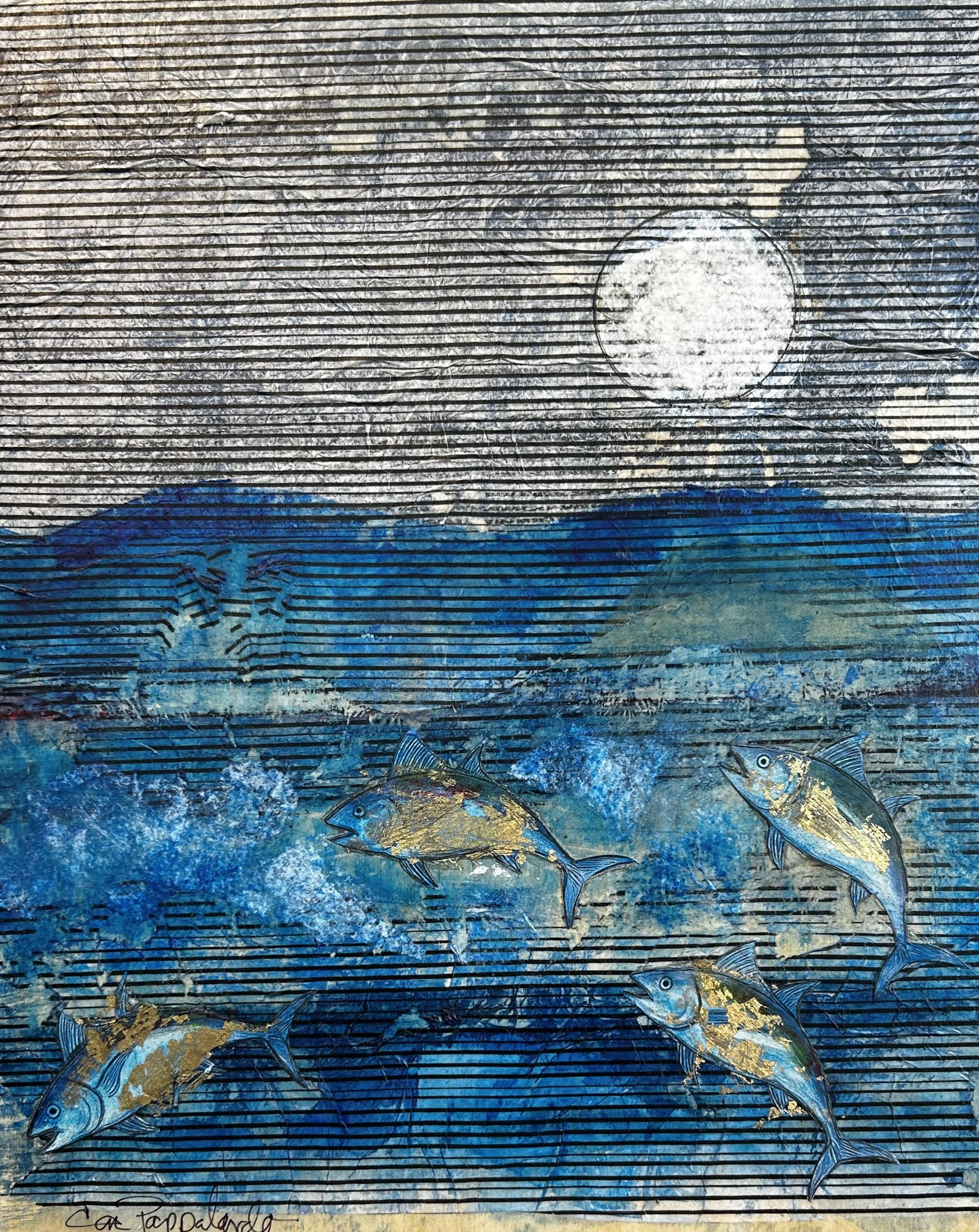 Collage, gilt and mixed media on wood panel
