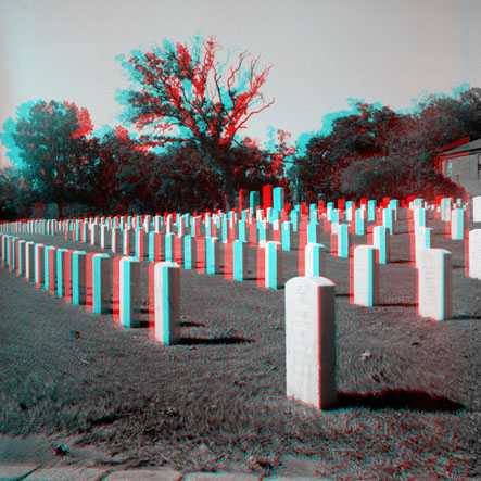 Framed in a black frame with an antique white mat under glass. 3-D glasses are included.