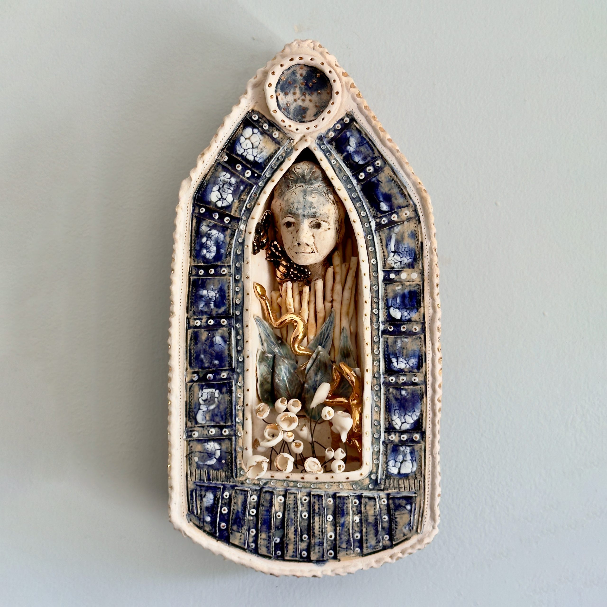 Ceramic wall sculpture glaze, oxides, luster, and nichrome wire