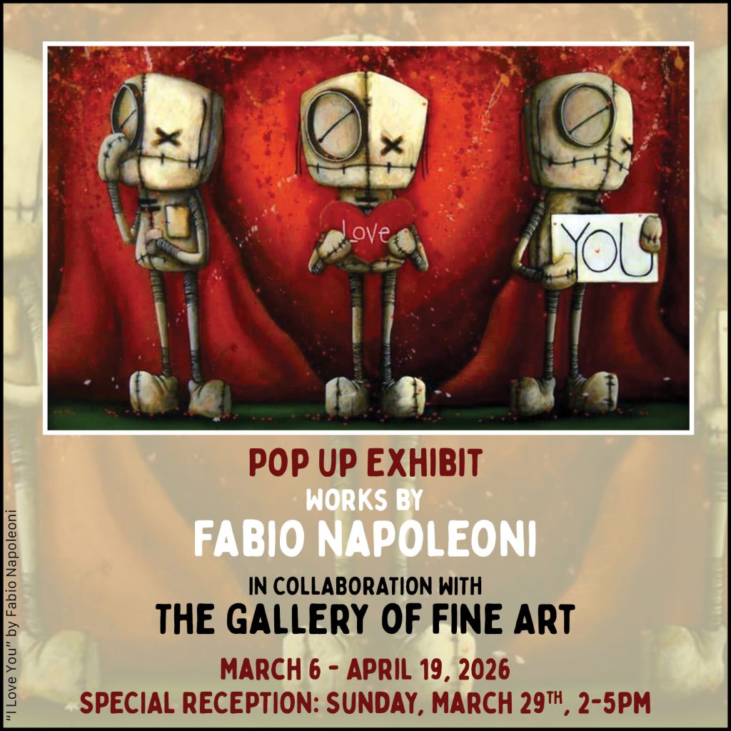 Also beginning March 6th, in collaboration with The Gallery of Fine Art, we are thrilled to offer a pop up art exhibit with the works of Fabio Napoleoni. This exhibit will feature a variety of limited edition prints by the artist.